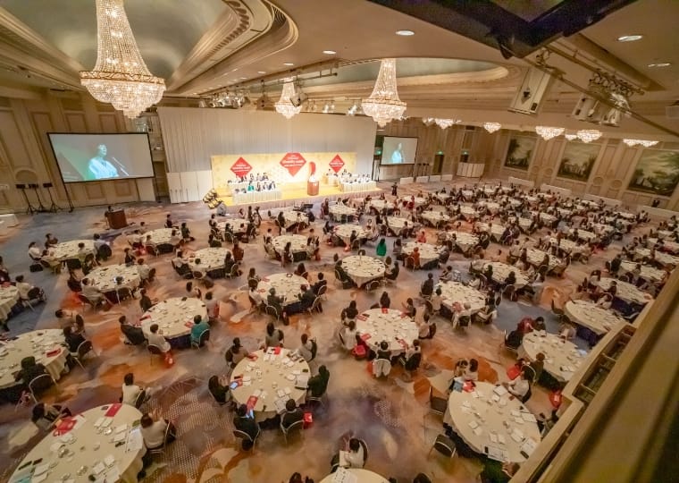 The day culminated in the buffet dinner networking party where the energy and excitement of the day was still high. First, the speakers, the Matching Sponsors, and the students they sponsored took the stage. They were both inspired and inspiring as they shared their new learnings and excitement about the Conference. The Gold Partner companies were introduced and then Norwegian Ambassador Christine Iglum offered a toast to old friends and new. The participants exchanged business cards as they enjoyed the sumptuous buffet dinner with a glass of wine. Everyone in the room was happy to experience the energy of a live Conference again and to greet old friends and make new ones.