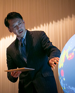 「織田信長が見ていたような(笑)、16世紀の世界地図で勉強しているこの状況を変えたい。そう思って、これを作りました。宇宙に行かなくても、宇宙船地球号の様子がわかります。皆さんもリラックスして、地球を感じていただきたいと思います」