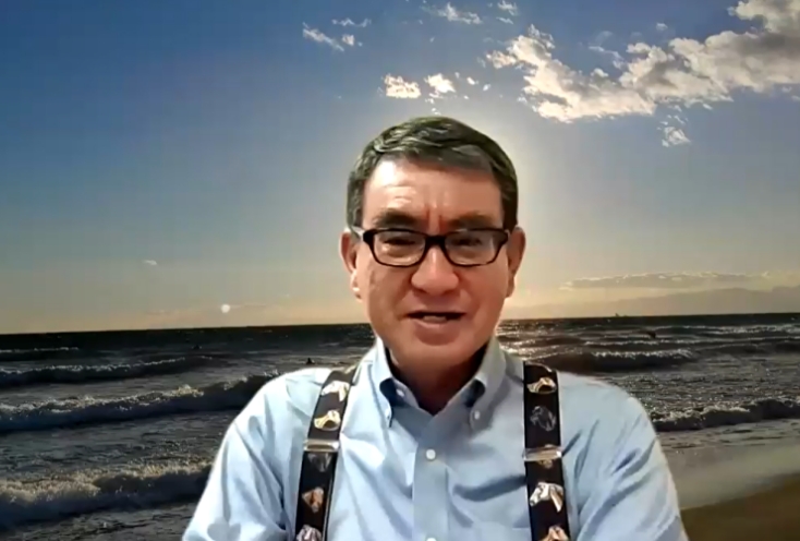 出張中の淡路島から登場されたのは、デジタル大臣などを務める河野太郎さんです。前のスピーカーである野田聖子さんとオンライン上で楽しげに挨拶を交わした後、表情をきりりと引き締めて語り始めました。